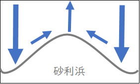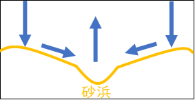 ではそれが離岸流にどう影響するか考えてみましょう。